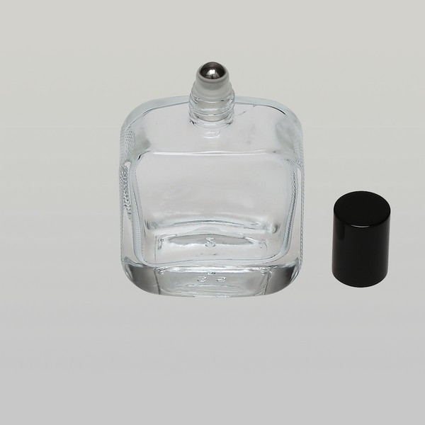 1 oz (30ml) Deluxe Rounded-Square Clear Glass Bottle with Stainless Steel Rollers and Color Caps